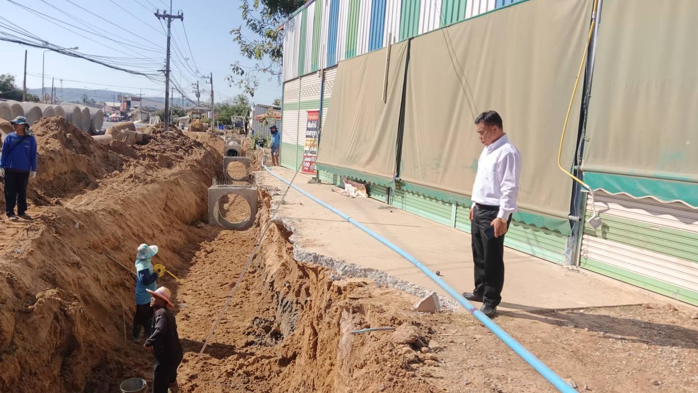 สำรวจท่อระบายน้ำที่จะเชื่อมต่อกับท่อของทางหลวง