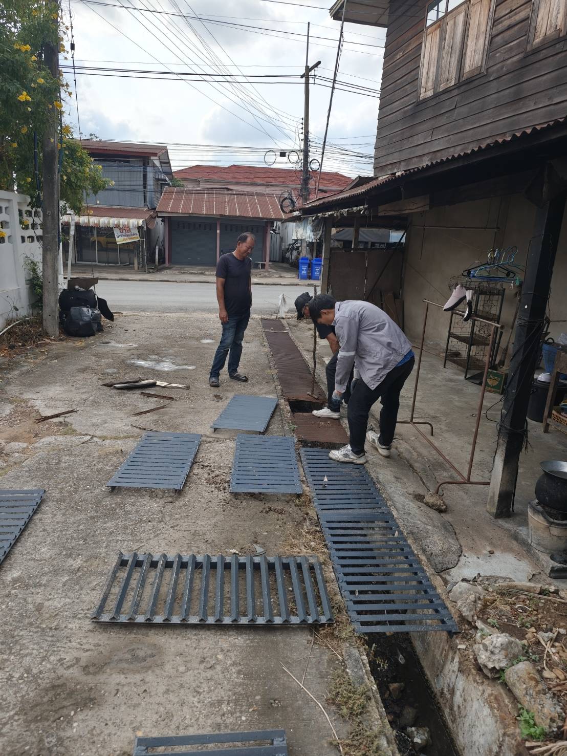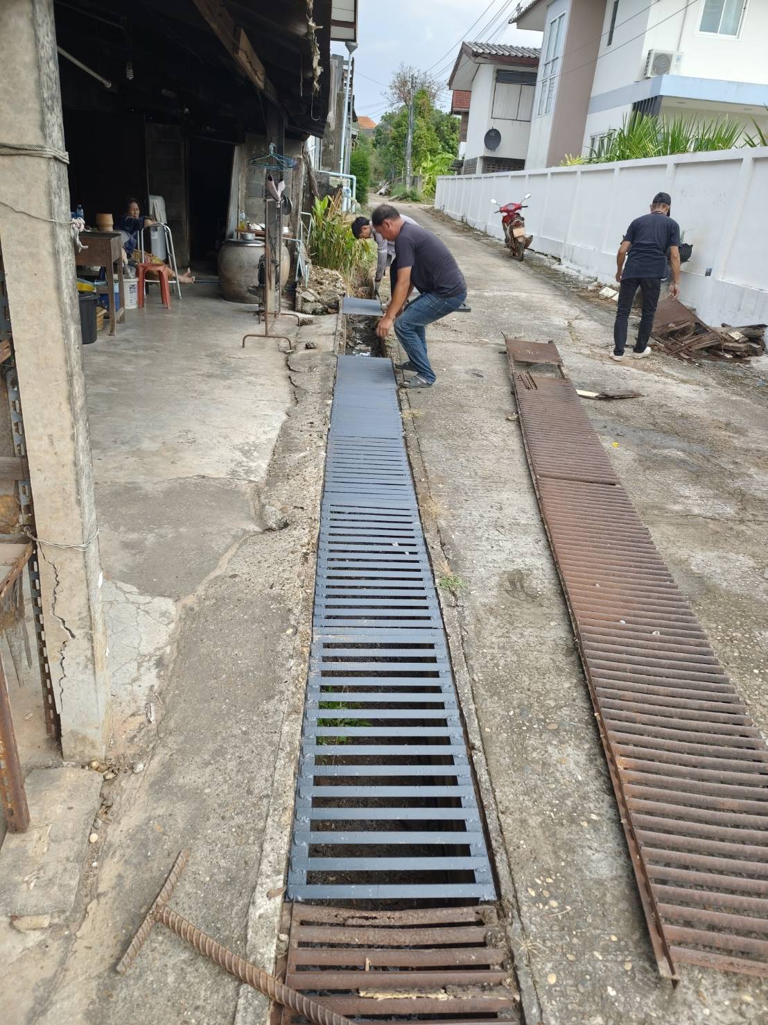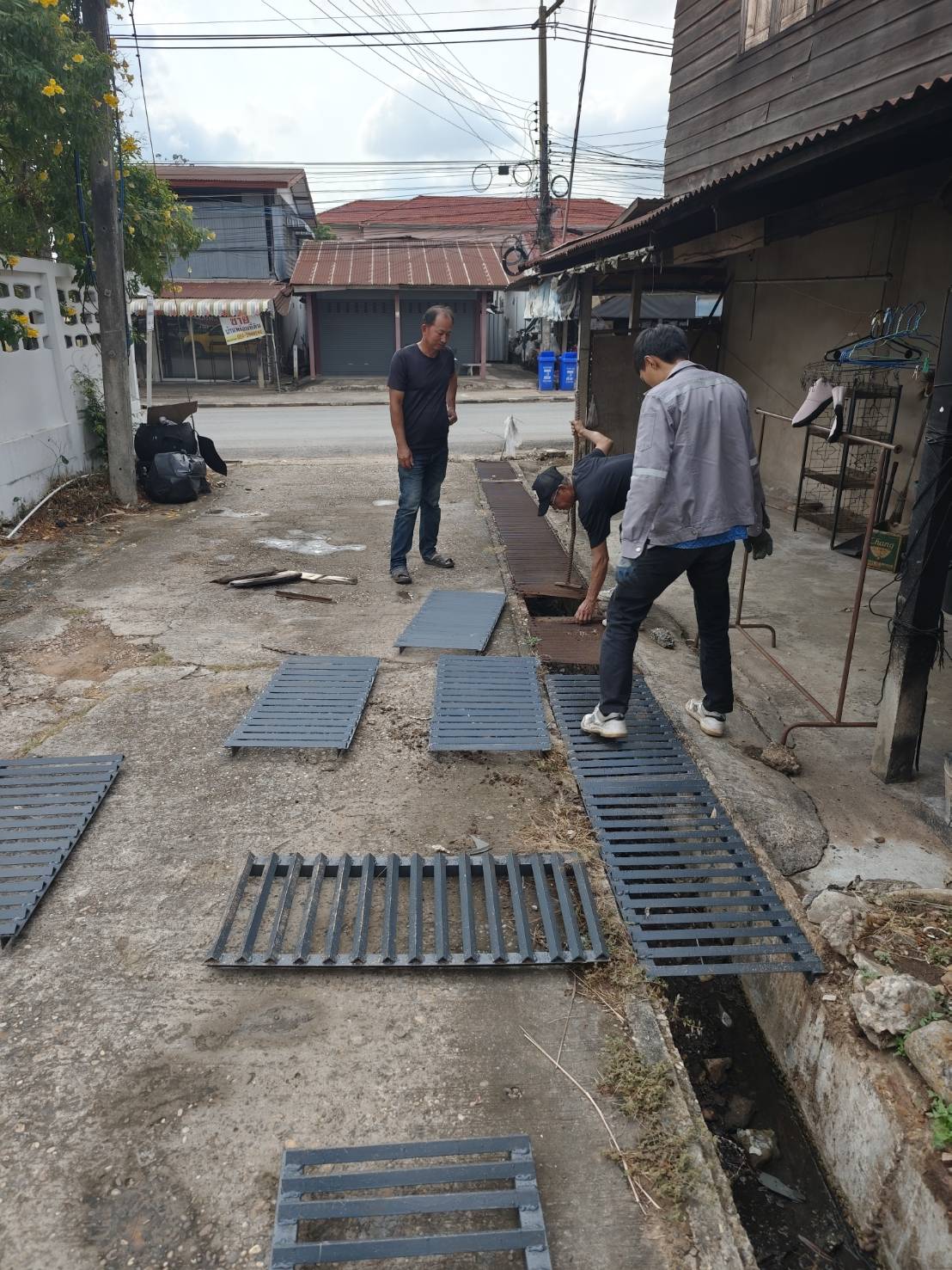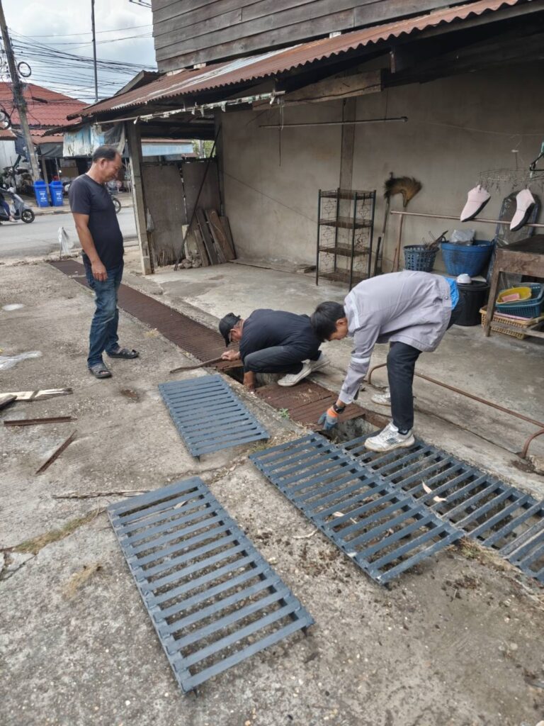 กองช่างซ่อมแซมฝาปิดรางระบายน้ำ ข้างสำนักงานสาธารณสุขอำภอนาคู