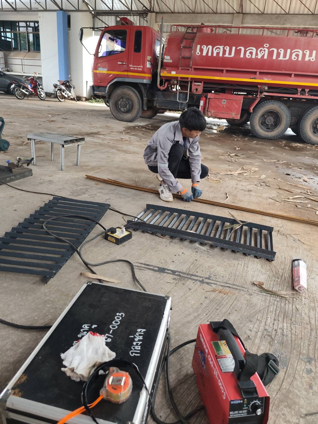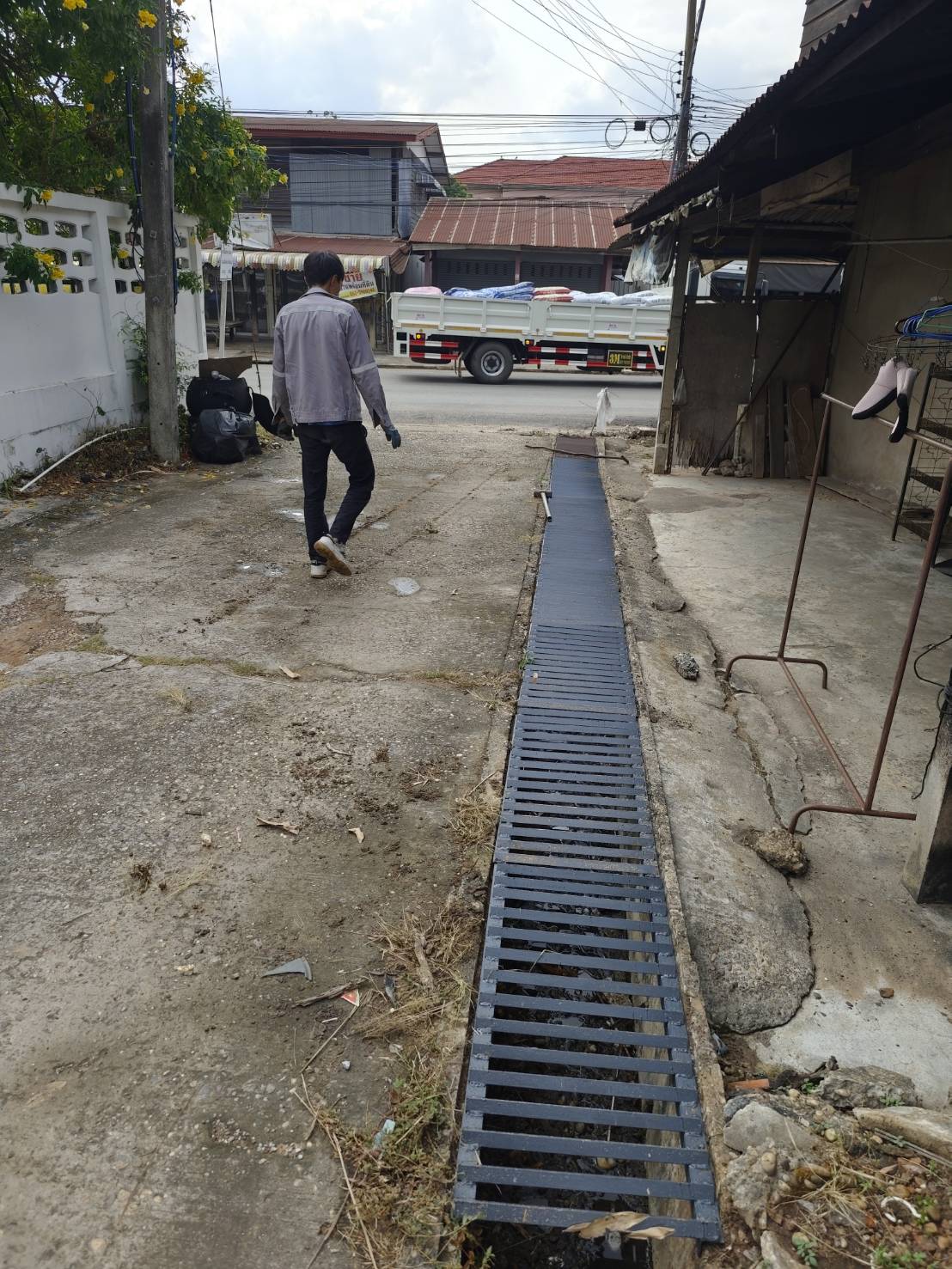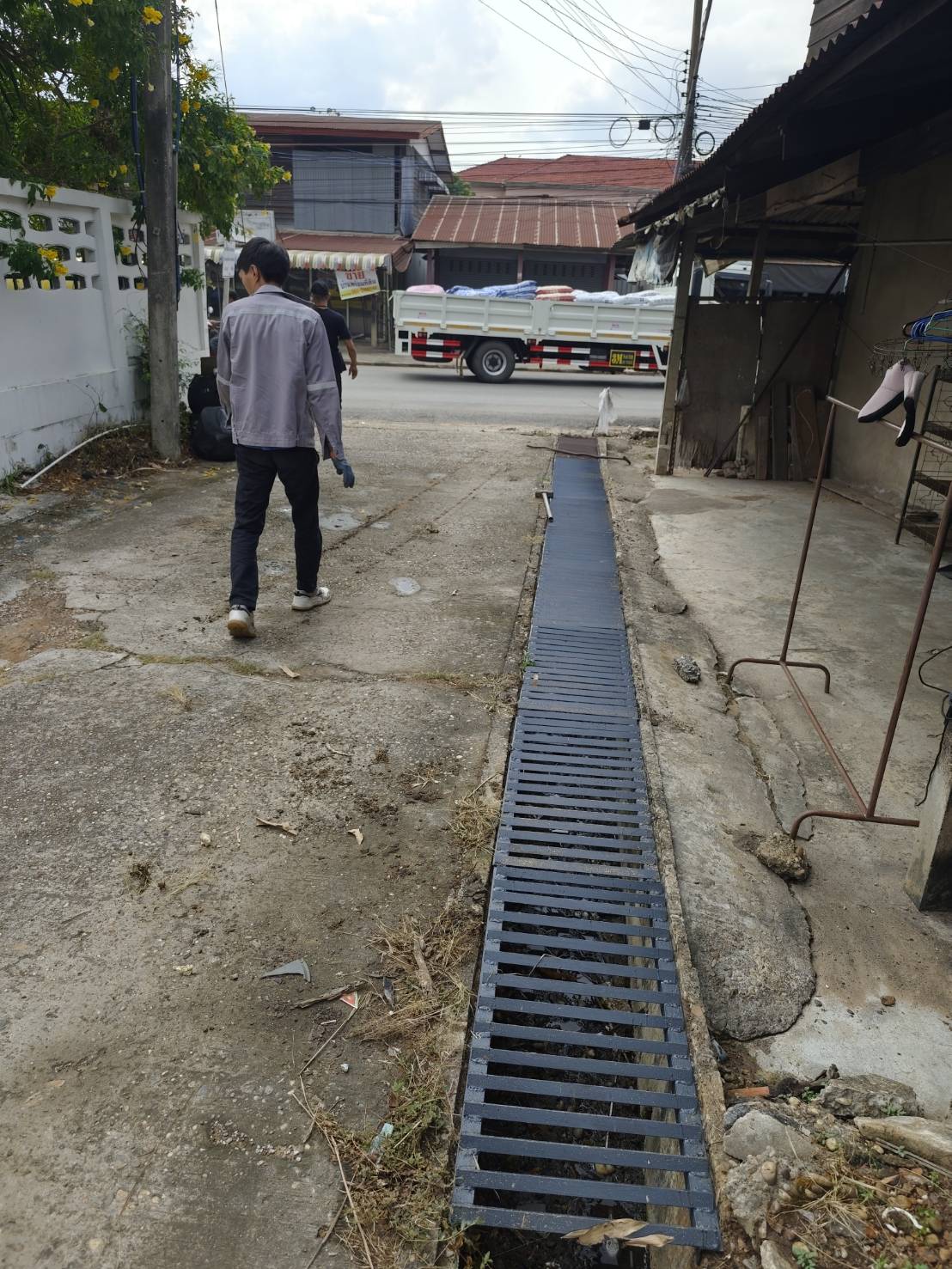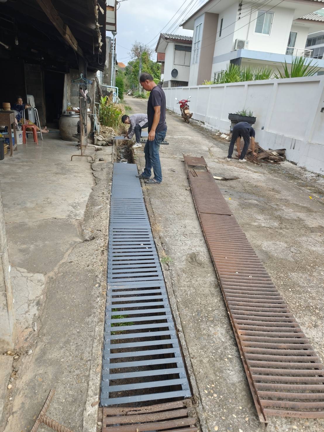 กองช่างซ่อมแซมฝาปิดรางระบายน้ำ ข้างสำนักงานสาธารณสุขอำภอนาคู