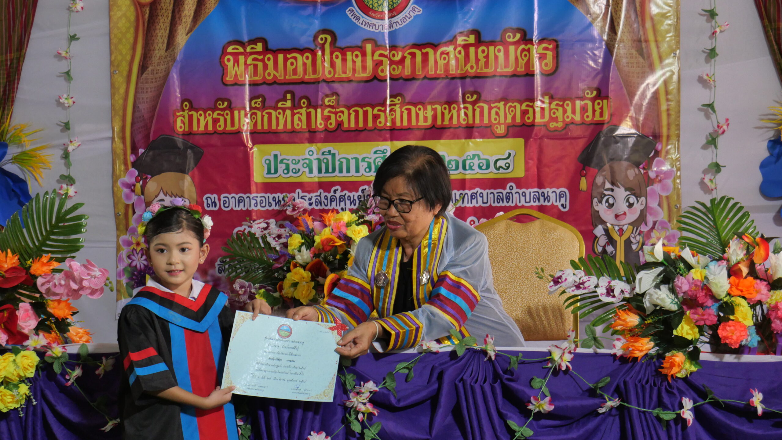 วันศุกร์ ที่ 27 มีนาคม 2569 เวลา 09.30 น. เทศบาลตำบลนาคู นายสุริยนต์ สุลำนาจ นายกเทศมนตรีตำบลนาคู​ มอบหมายให้ นางวัชรพรรณ สุริยโคตร รองนายกเทศมนตรีตำบลนาคู,พันตรีบุญส่ง ใจอ่อน รองนายกเทศมนตรีตำบลนาคู, สมาชิกสภาเทศบาลตำบลนาคู, นางพิสนภางค์ เกษทองมา ปลัดเทศบาลตำบลนาคู,นายประเสริฐ ทองสุขนอด ผู้อำนวยการกองช่าง,นายภานุวัฒน์ พละสินธุ์ ผู้อำนวยการกองสารณสุขและสิ่งแวดล้อม,นางพรกมล พลขยัน ผู้อำนวยการกองคลัง,นางสาวพิกุล แพงพุฒ ผู้อำนวยการกองการศึกษา เข้าร่วมพิธีมอบประกาศนียบัตรสำหรับเด็กที่สำเร็จการศึกษาระดับปฐมวัย ประจำปี 2568 ณ​ อาคารอเนกประสงค์ศูนย์พัฒนาเด็กเล็กเทศบาลตำบลนาคู