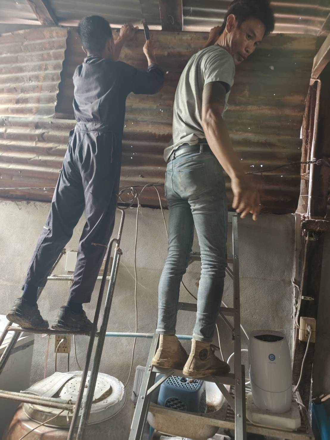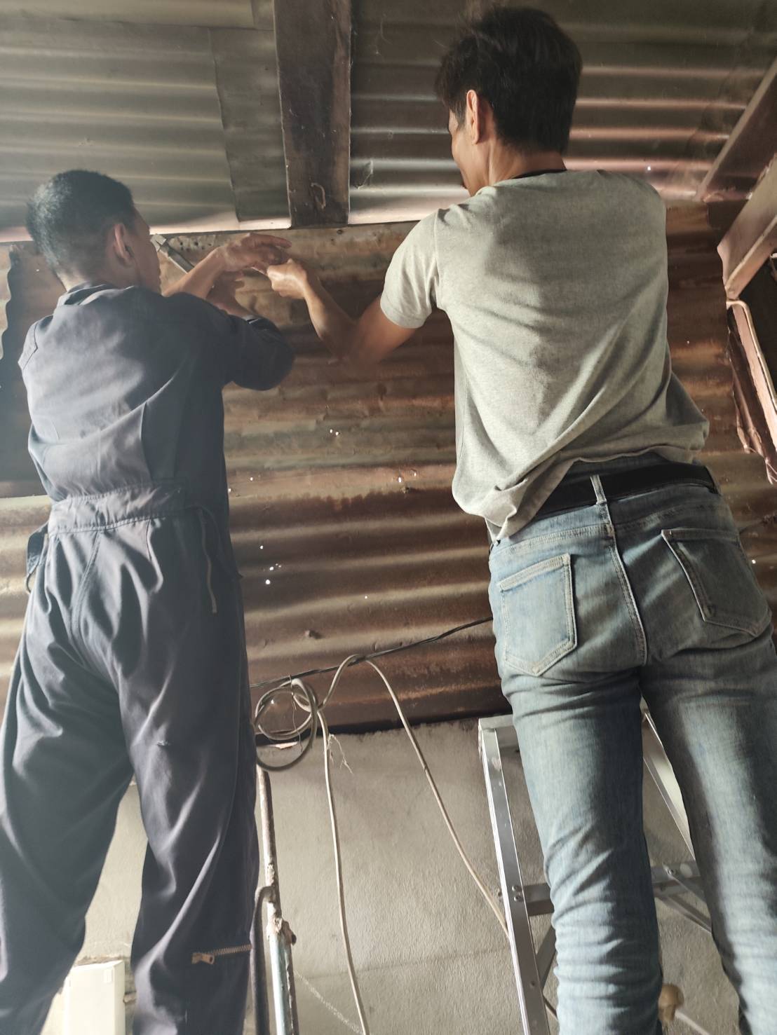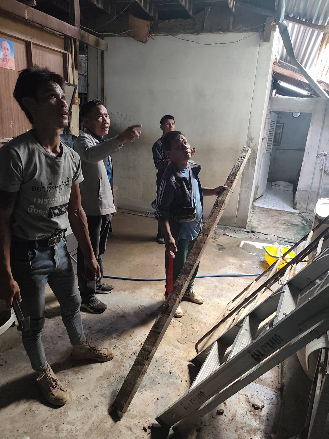 เจ้าหน้าที่งานป้องกันบรรเทาสาธารณและเจ้าที่กองช่าง ออกซ่อมแซมบ้าน หมู่ 12 ตำบลนาคู อำเภอนาคู จากเหตุการณ์พายุถล่ม