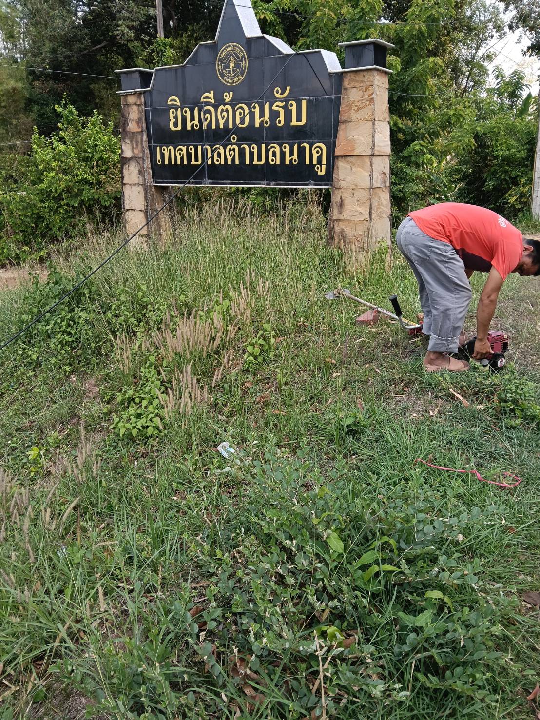 ได้ออก ดูแลรักษาความสะอาด ปรับภูมิทัศน์ ตัดหญ้าบริเวณสาธารณะและบริเวณทางเข้าออกในเขตเทศบาลตำบลนาคู